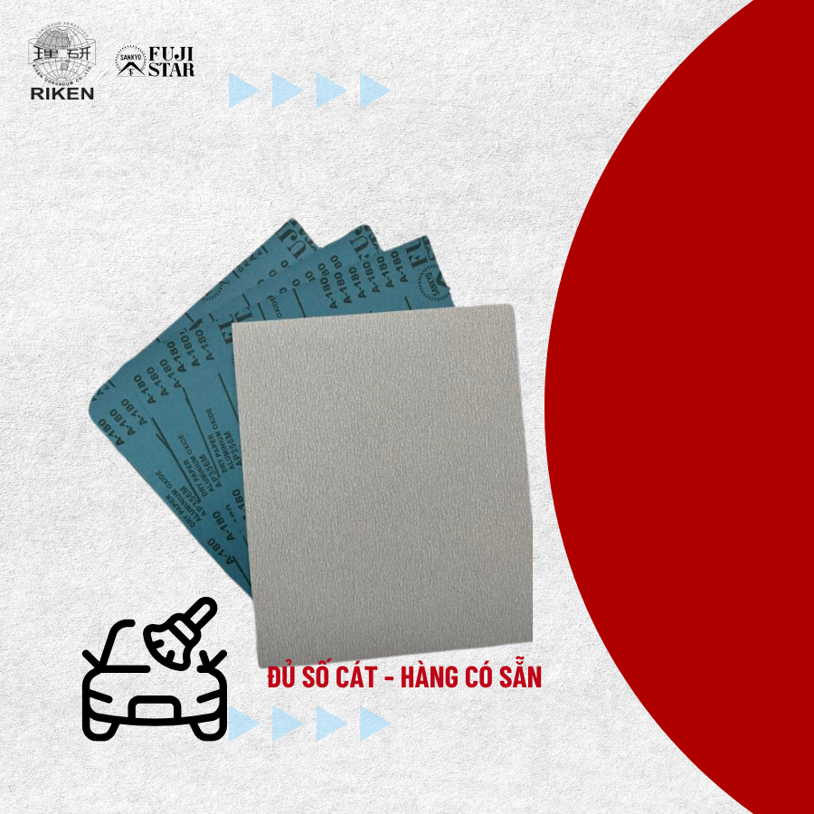 Giấy nhám Hãng Fujistar Sankyo, Nhật Bản, kích thước 230mmx280mm. Được sản xuất theo công nghệ Nhật Bản, là loại giấy nhám phổ biến nhất trên thị trường Việt Nam, chất lượng tốt và giá thành rẻ. Có thể mài ở môi trường khô và nước. Phù hợp với mọi chất liệu.