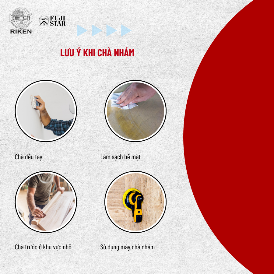 Chà nhám đều tay: Tránh chà quá mạnh tại một điểm để tránh tạo ra các vết lõm.