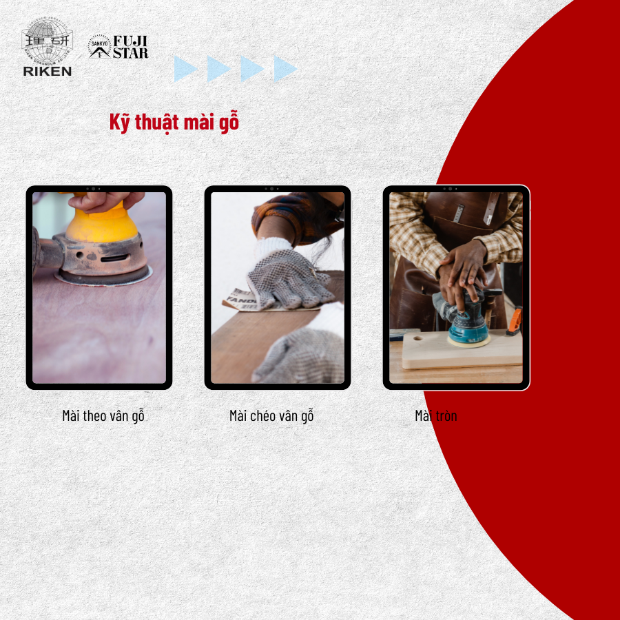 Áp lực: Không nên ép quá mạnh khi mài, điều này có thể làm cháy gỗ hoặc làm mòn giấy nhám quá nhanh.