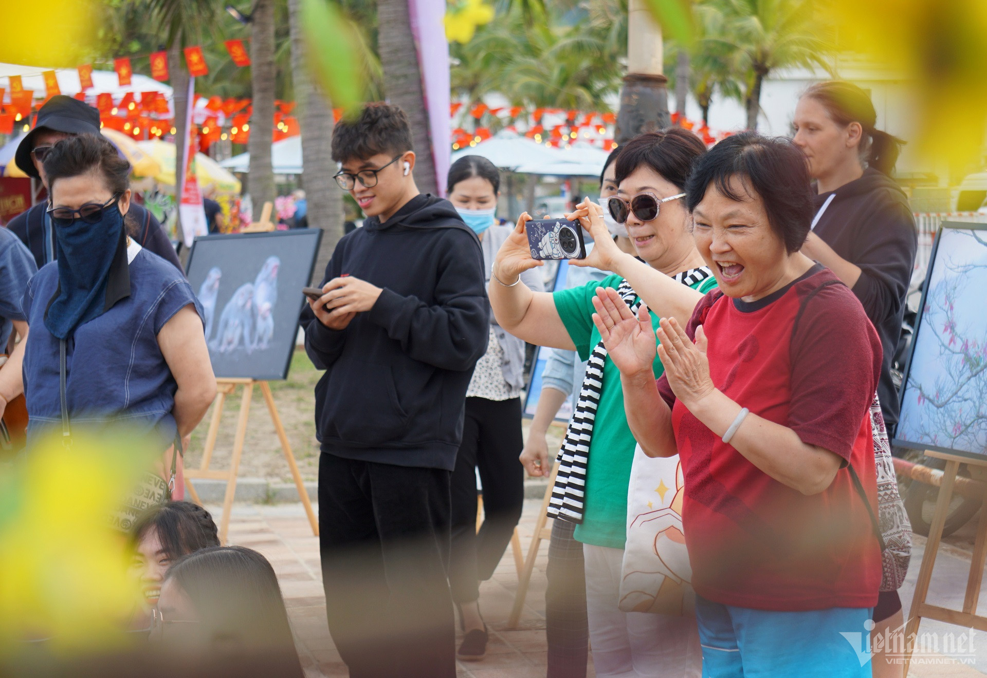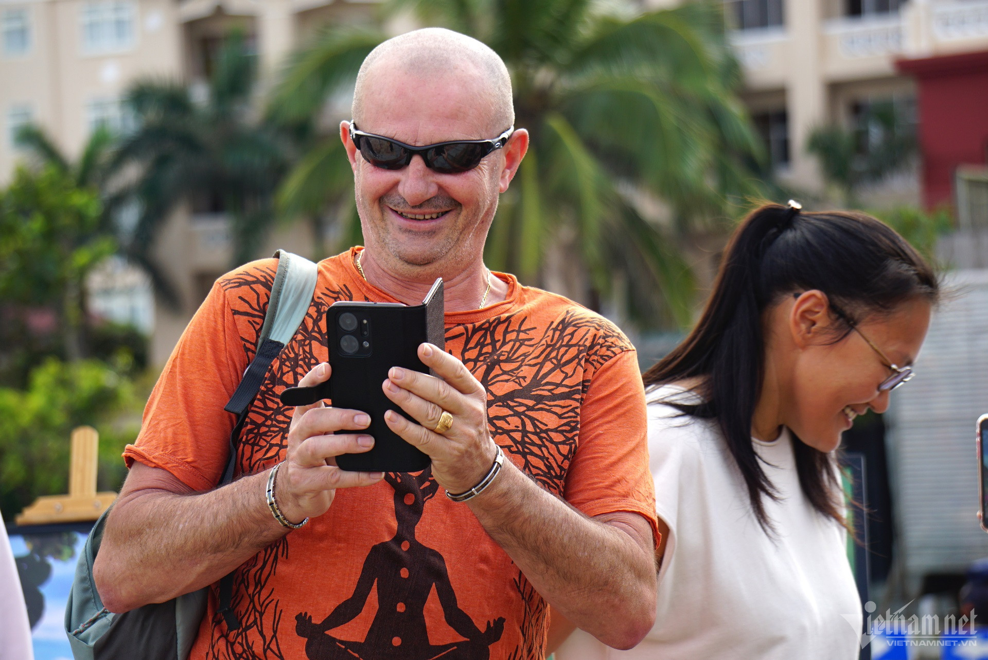 Hình ảnh du khách thích thú trải nghiệm văn hóa ngày Tết của Việt Nam: